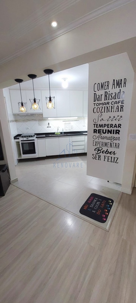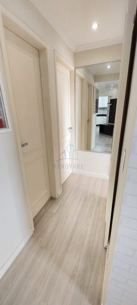 Apartamento para venda com 69m², sala com piso laminado e janela panorâmica, cozinha aberta tipo americana com móveis planejados, 2 quartos com moveis planejados, banheiro com box de vidro, lavanderia com móveis, 1 vaga de gareagem.
