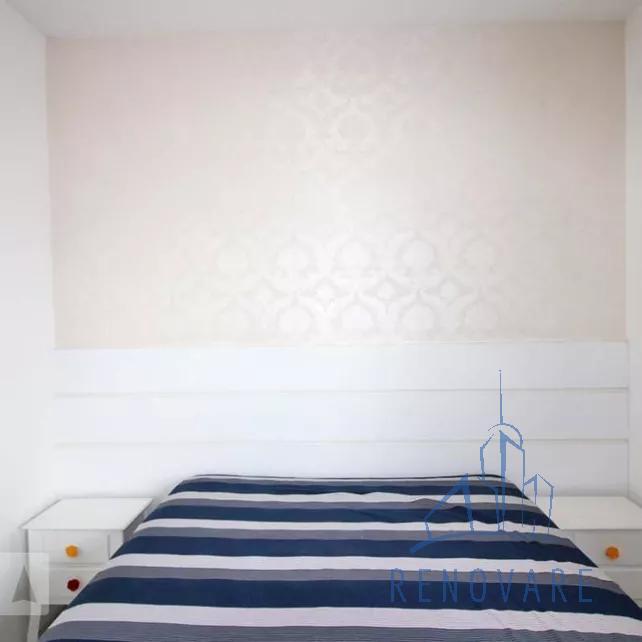 O quarto principal conta com uma confortável cama de casal, 2 mesinhas de cabeceira e cortinas instaladas.