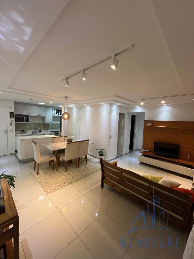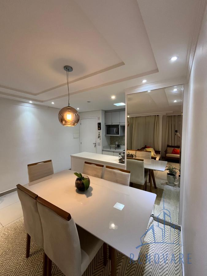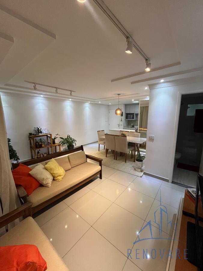 Com 2 dormitórios sendo 1 suíte, possui varanda, 2 salas, cozinha americana, 2 banheiros, área de serviço e 1 vaga de garagem.