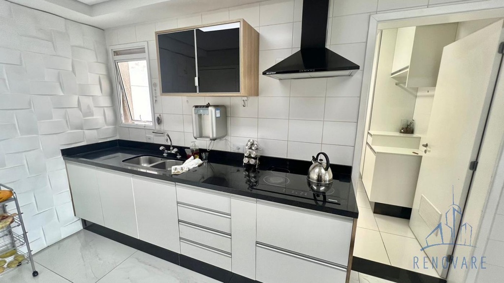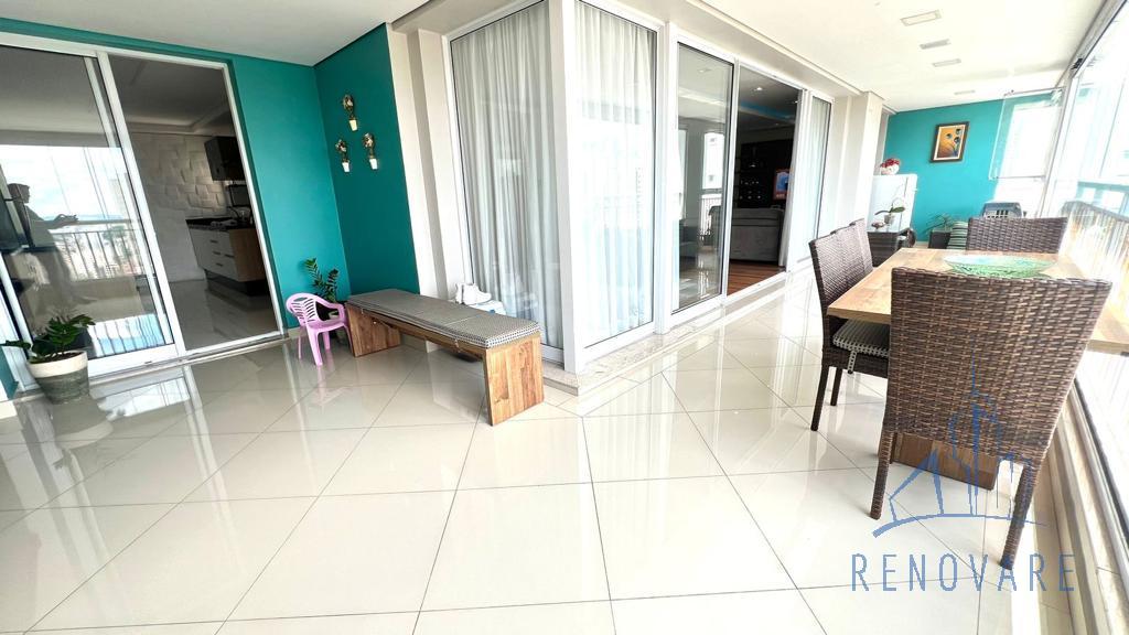 São 3 dormitórios – todos suíte, sala com 2 ambientes, varanda, cozinha, área de serviço e 3 vagas de garagem.