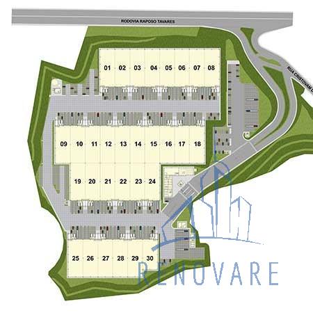 O condomínio CLR Sanca Galpões Raposo Tavares possui segurança e portaria blindada 24h, restaurante e área administrativa. Estrategicamente posicionado para distribuição em São Paulo, sem gastos com pedágio.