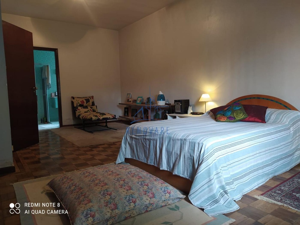 Com 3 dormitórios sendo 1 suíte, possui 2 banheiros, 4 salas e escritório, lavabo, cozinha, área de serviço, dependências de empregada, quintal com grande área verde, e 6 vagas de garagem sendo 3 cobertas.